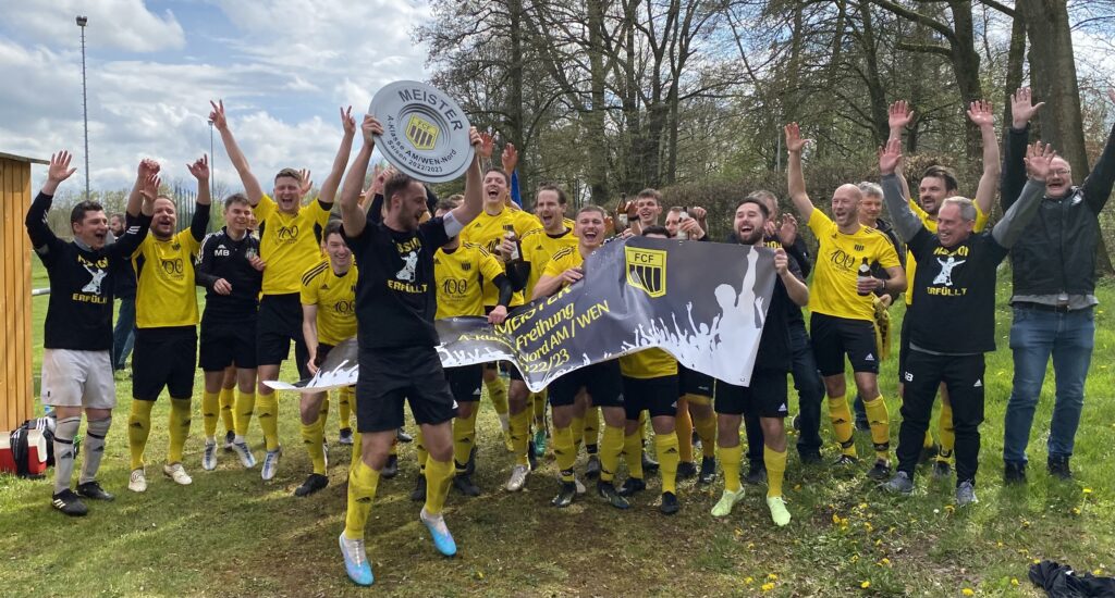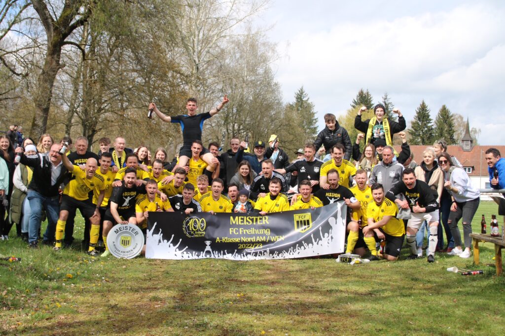 (rth) Mit einem klaren 5:0-Sieg bei der DJK Weiden II konnte der FC Freihung bereits 4 Spieltage vor Schluss die Meisterschaft in der A-Klasse Nord erreichen und so pünktlich zum 100-jährigen Jubiläum wieder den Aufstieg in die Kreisklasse schaffen.