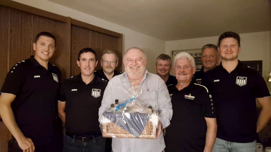 Unser Ehrenmitglied Helmut Fiedler konnte im September seinen 70. Geburtstag feiern und hat deshalb zu einer kleinen Brotzeit samt Umtrunk zu sich nach Hause eingeladen. Dieser Offerte ist man sehr gerne nachgekommen und machte sich mit einer Abordnung auf den Weg nach Weiden. Bei schönen Gesprächen ließ man Vergangenes Revue passieren, konnte aber zugleich auf aktuelle Geschehnisse blicken, da der Jubilar nach wie vor „up to date“ ist und aktiv am Vereinsleben teilnimmt. Mehr als sein halbes Leben lang, seit knapp 39 Jahren, ist er Mitglied beim FCF.