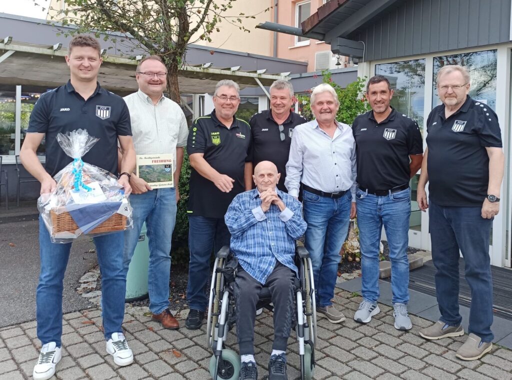 Anfang September machte sich eine hochkarätige Delegation des FC Freihung auf zu unserem Ehrenmitglied Herbert Habraschka, um ihm zum 85. Geburtstag zu gratulieren. Er lebt mittlerweile in der ruhig und harmonisch gelegenen Seniorenwohnanlage St. Stephanus in Edelsfeld. Die Freude über das Wiedersehen war auf beiden Seiten groß, beim Besuch spielte er dann sogar einige Lieder auf der Mundharmonika für seine alten Weggefährten.